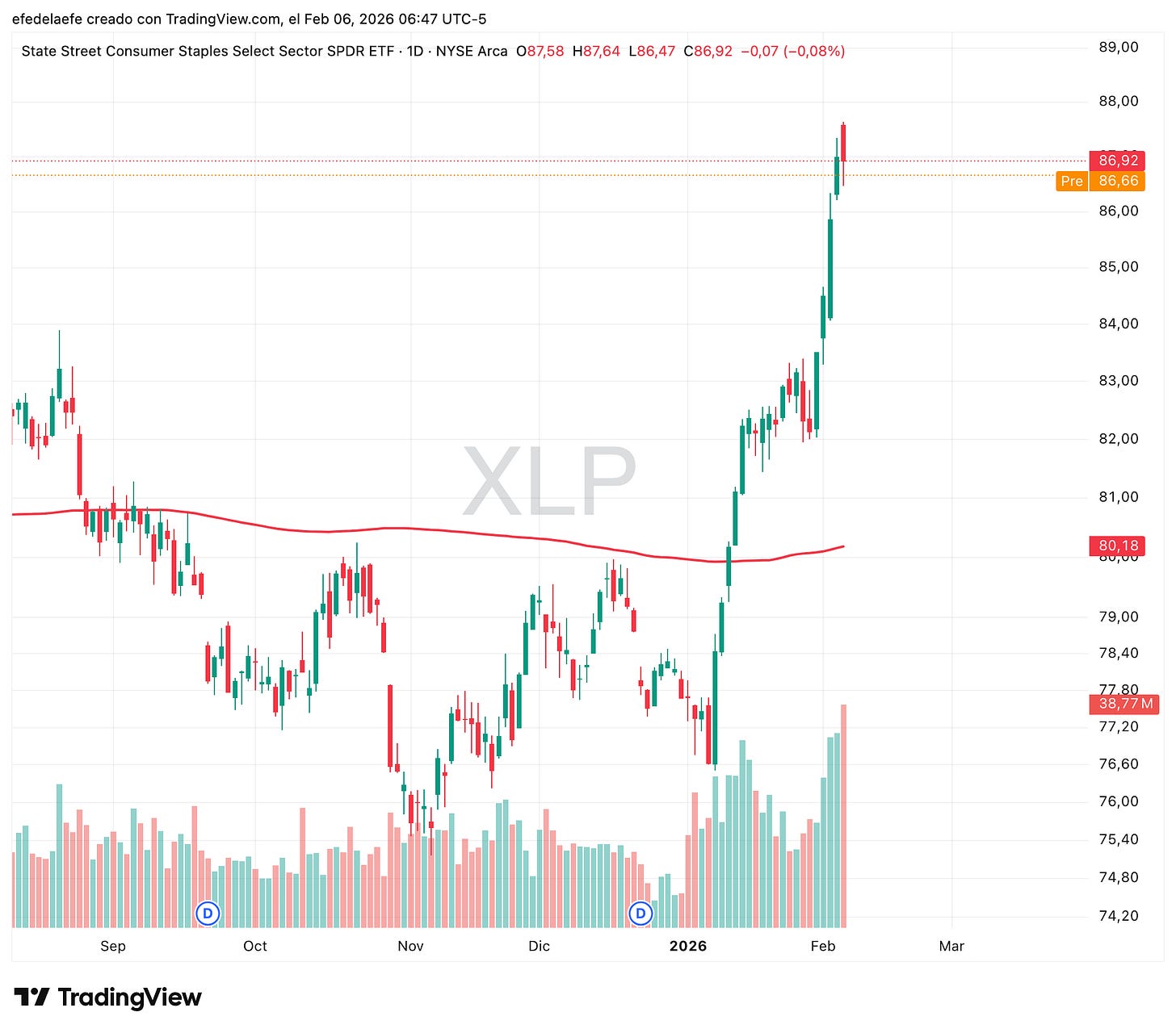 La realidad es más aburrida, pero más rentable: falta dinero en el sistema. Cuando la liquidez se seca, se vende lo que tiene riesgo (Software, Cripto) y se compra lo que se come (Staples). Es un movimiento pendular, no estructural.