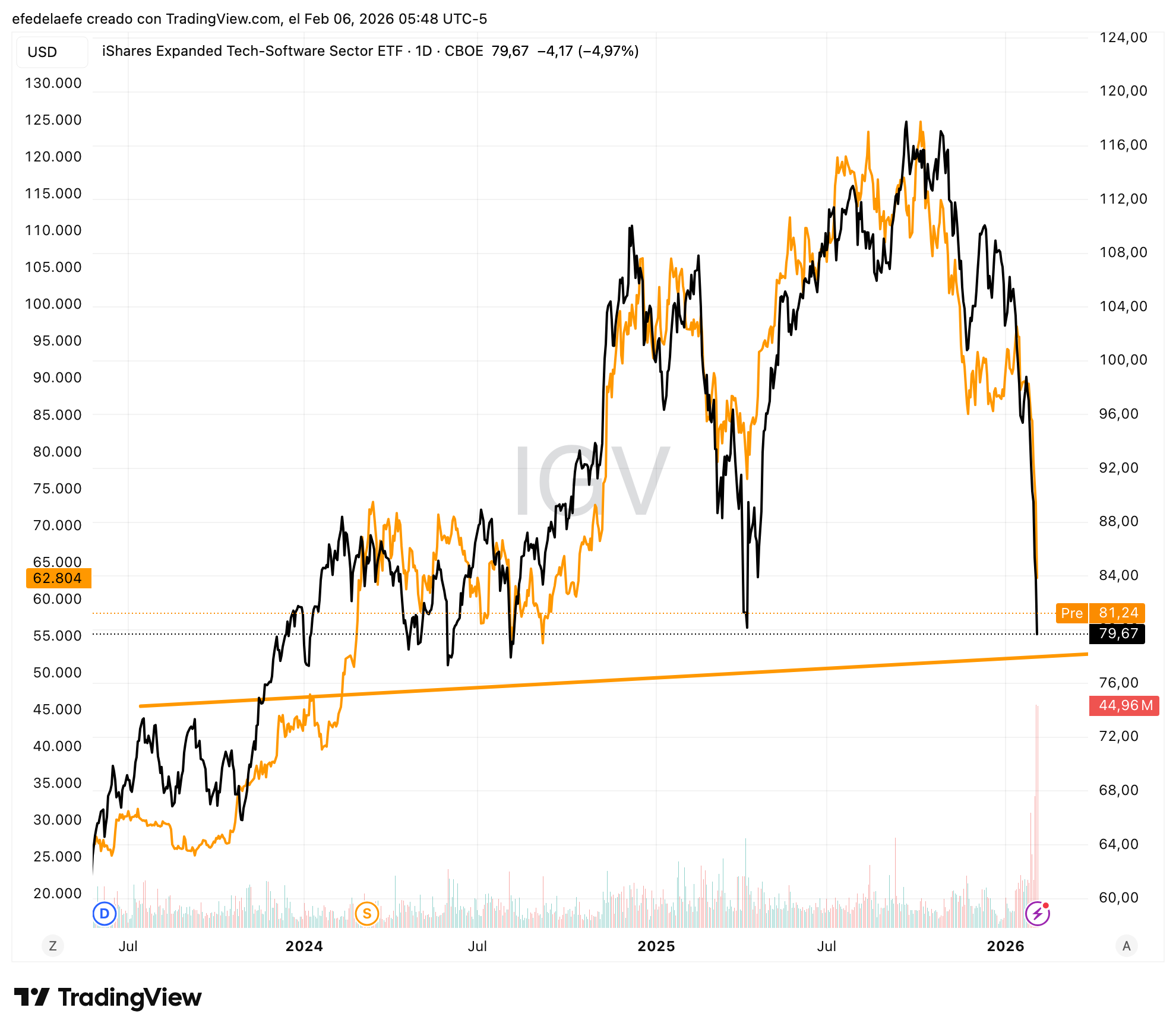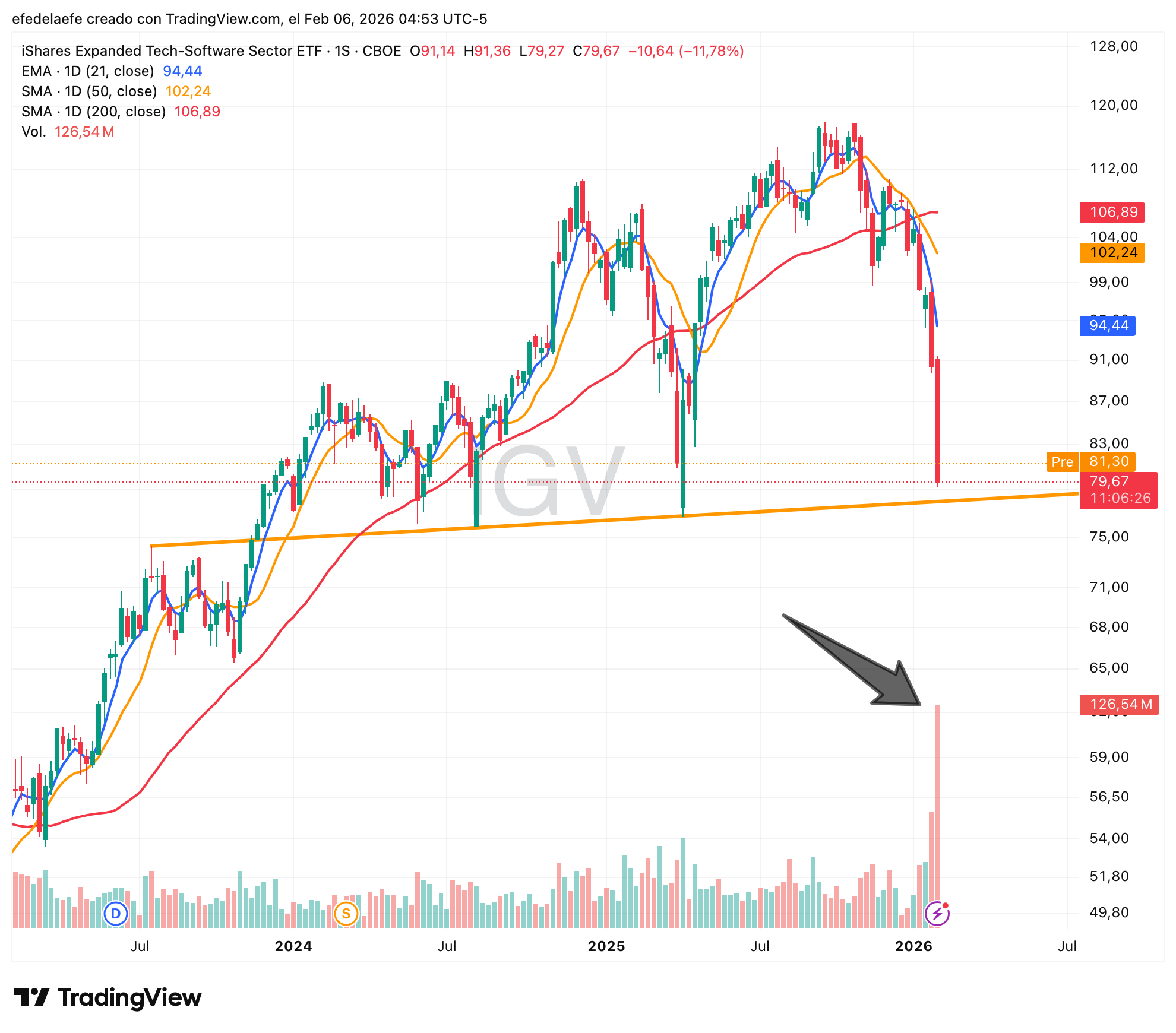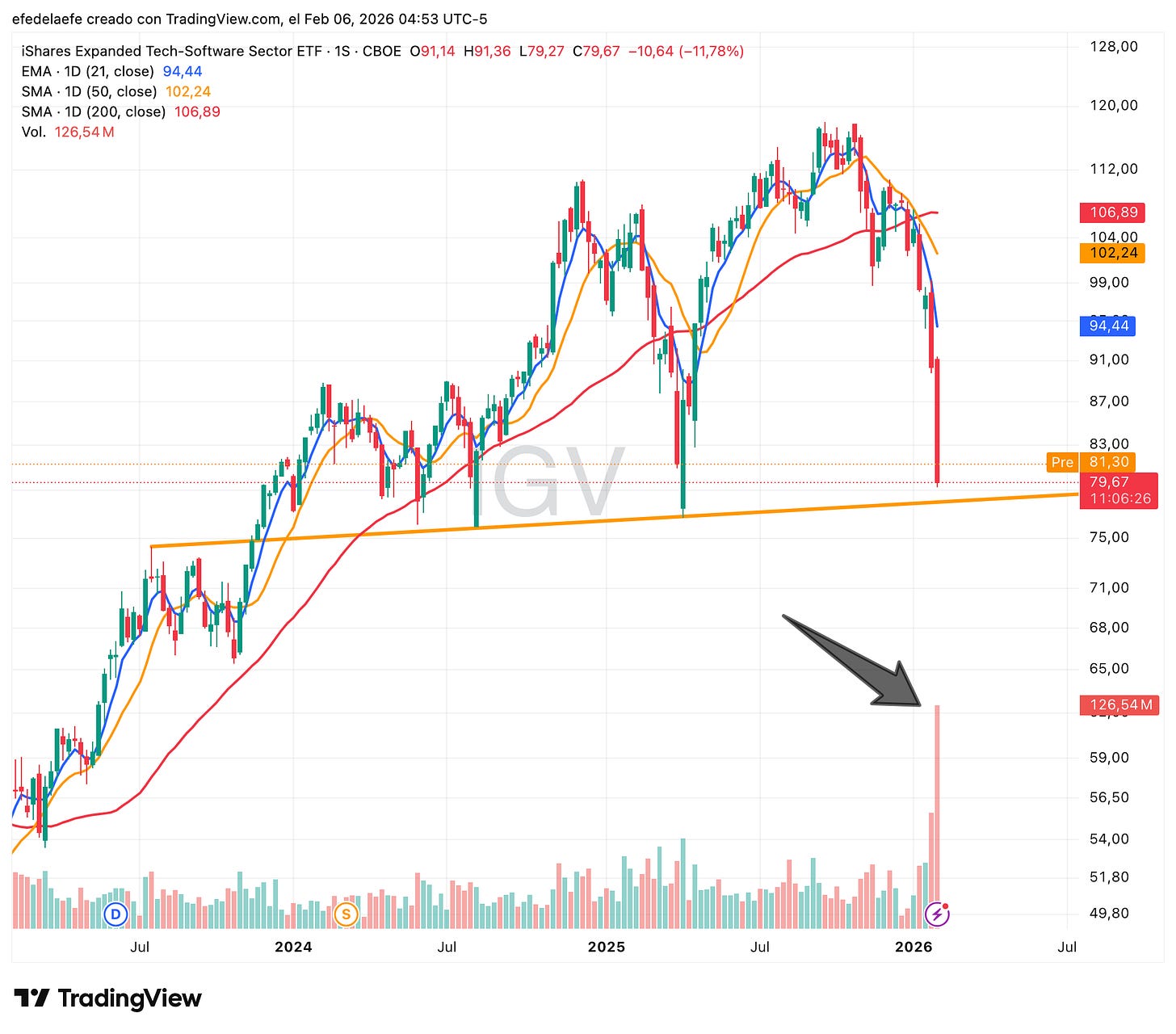El ETF de referencia, IGV, está en caída libre y el mercado está actuando como si el Software fuese a dejar de existir. Así que vamos a hacer lo único sensato: entender la narrativa… y ver si esto es una oportunidad o una trampa.