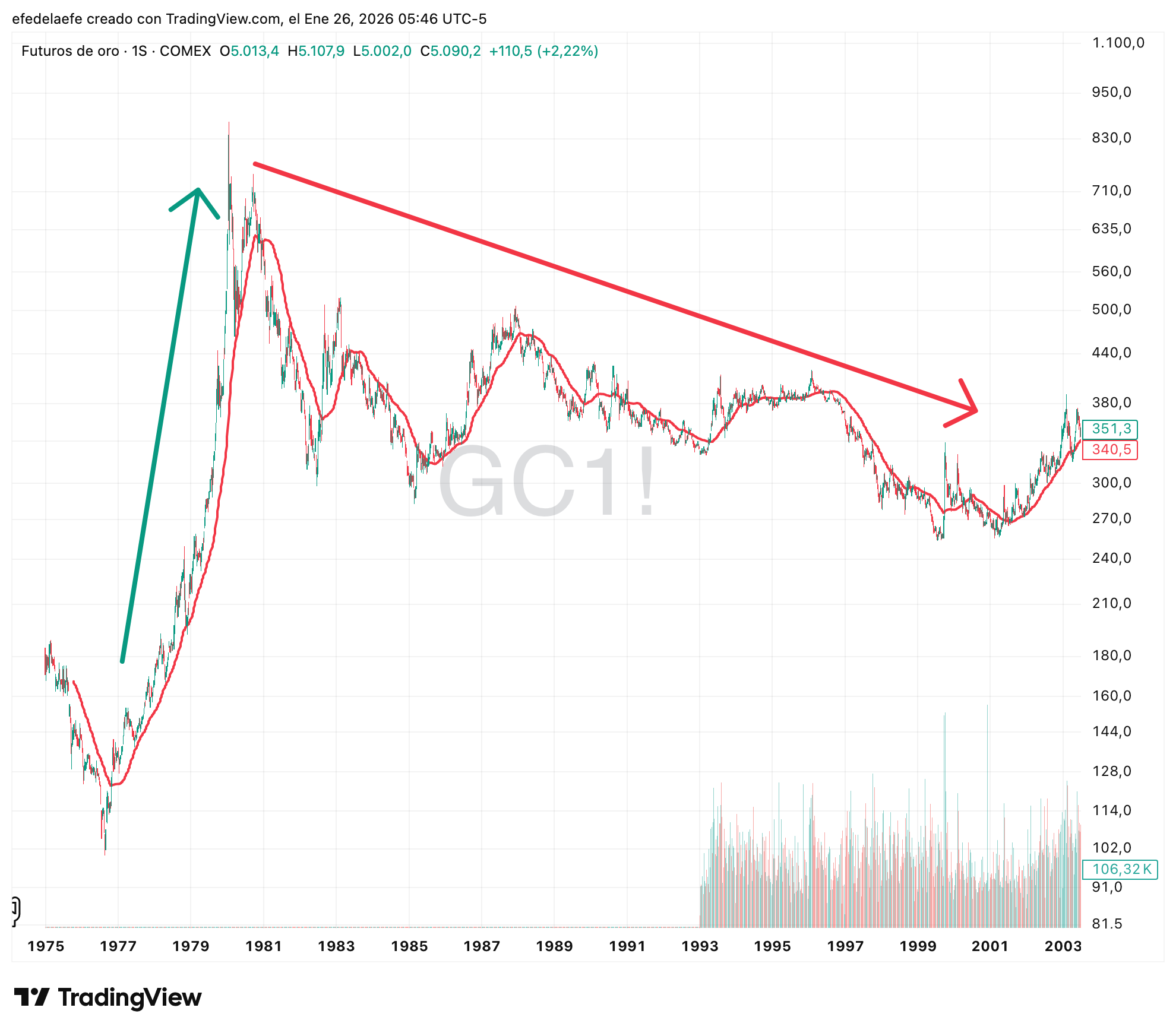 Puede subir mucho como en 1977-1980 y después bajar durante 20 años. Eso no es algo que quieras meter en un porcentaje alto en tu cartera de largo plazo.