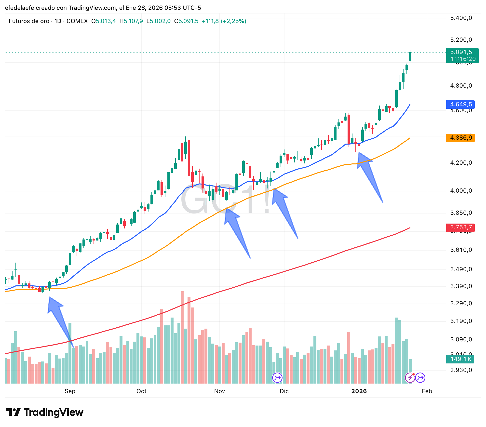 Si no estás dentro, lo mejor es esperar a que el precio vuelva a la media de 21 días, que actualmente se sitúa en $4.650. Aunque parezca una cifra lejana, precisamente por estar tan lejos ahora mismo no es el mejor momento para comprar con tranquilidad. Un aumento del 20% mañana no cambiaría mi decisión. Es fundamental tener tus propias reglas de inversión. Comprar aquí sería caer en el FOMO.