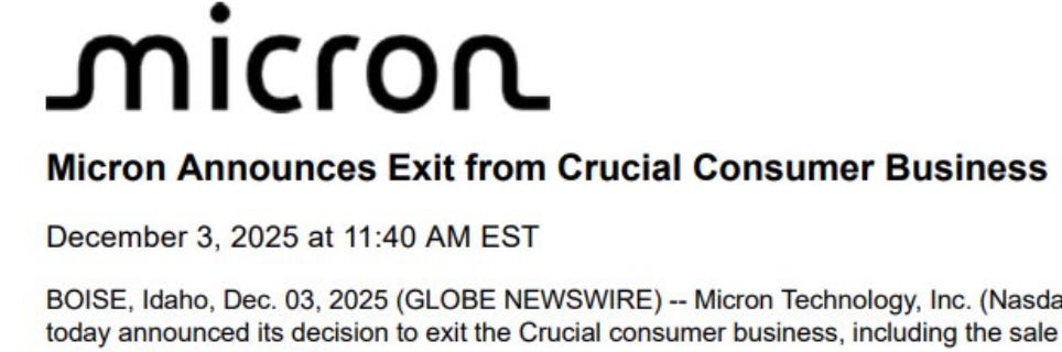 Así que han hecho lo lógico: matar Crucial (el negocio retail), liberar capacidad de fabricación y centrarse solo en la memoria premium que mueve el mundo de la IA. Resultado: menos oferta de RAM/SSD para el consumidor y precios más altos.