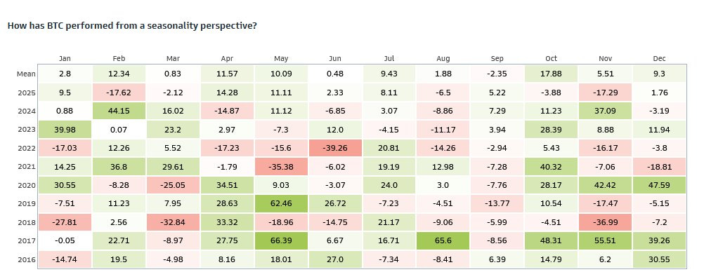 La lectura es clara: la estacionalidad da un ligero viento de cola en la entrada del mes, pero abril es mejor y más estable. El rango histórico de resultados en Bitcoin durante marzo es demasiado amplio como para fiarse de la media.