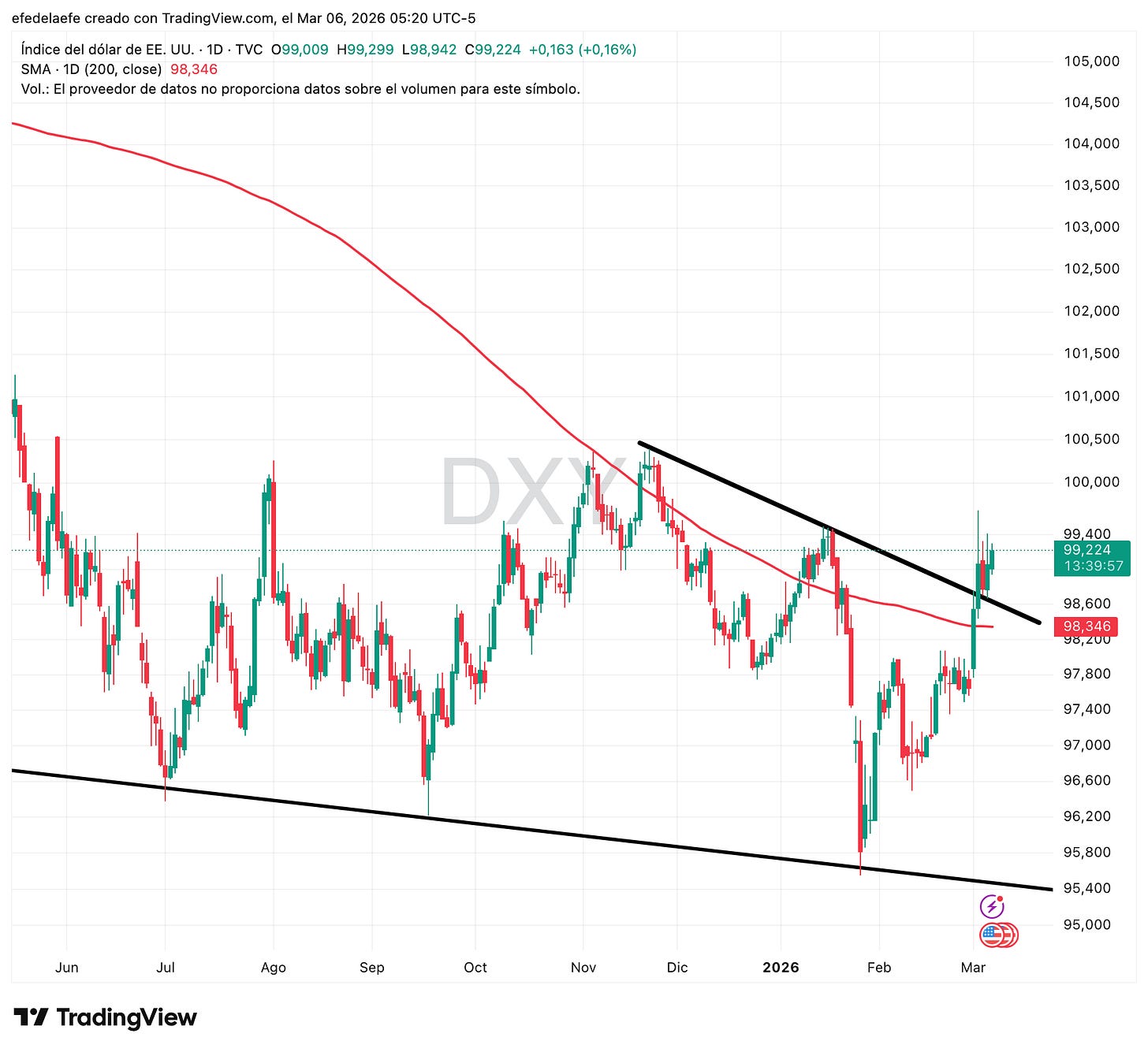 Es la primera reacción de fortaleza real en mucho tiempo: cuando el mundo se asusta de verdad, el dólar sigue siendo el activo refugio por excelencia.