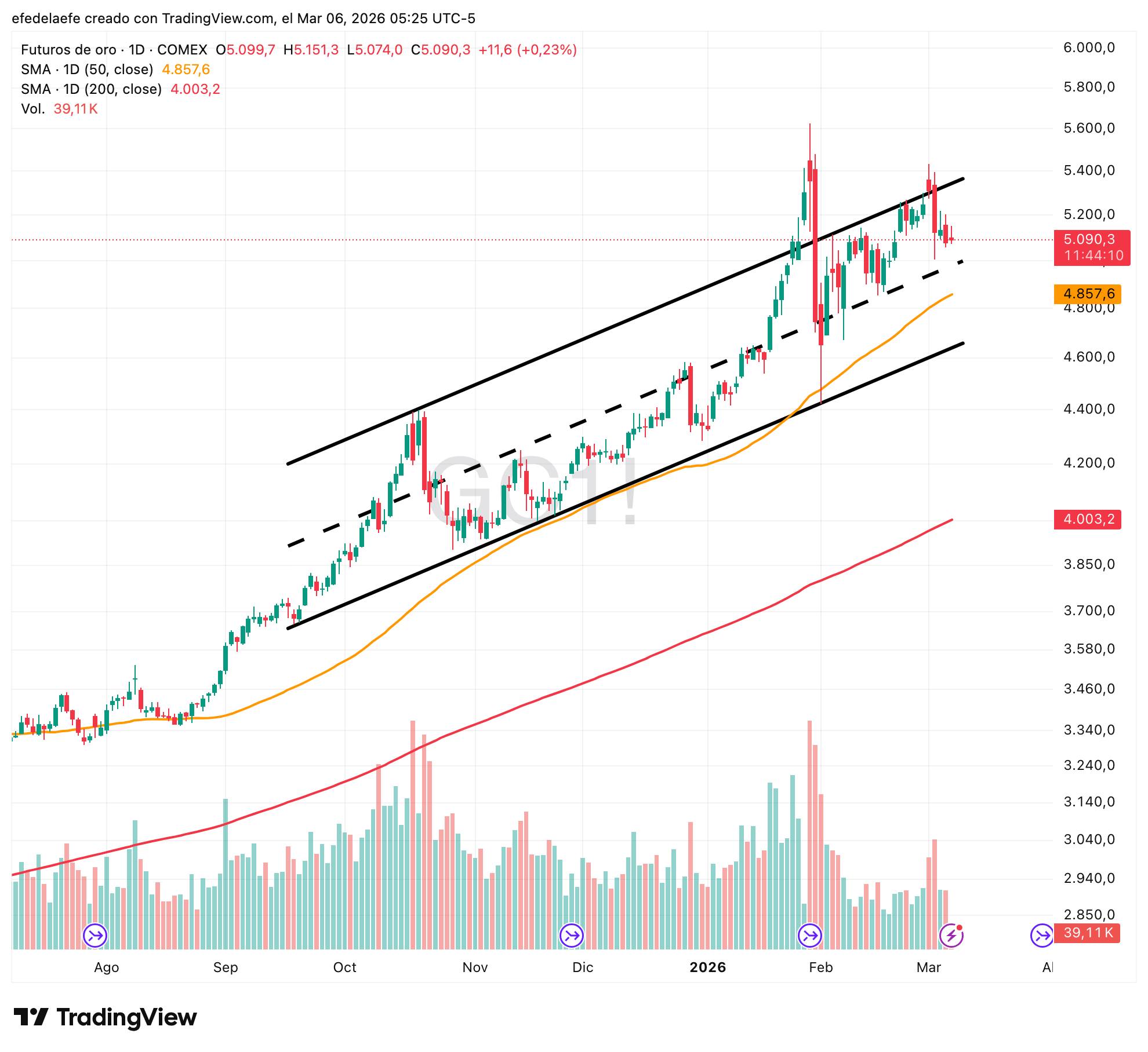 Oro: segundo intento de salir del canal por arriba, no conseguido. 🔴