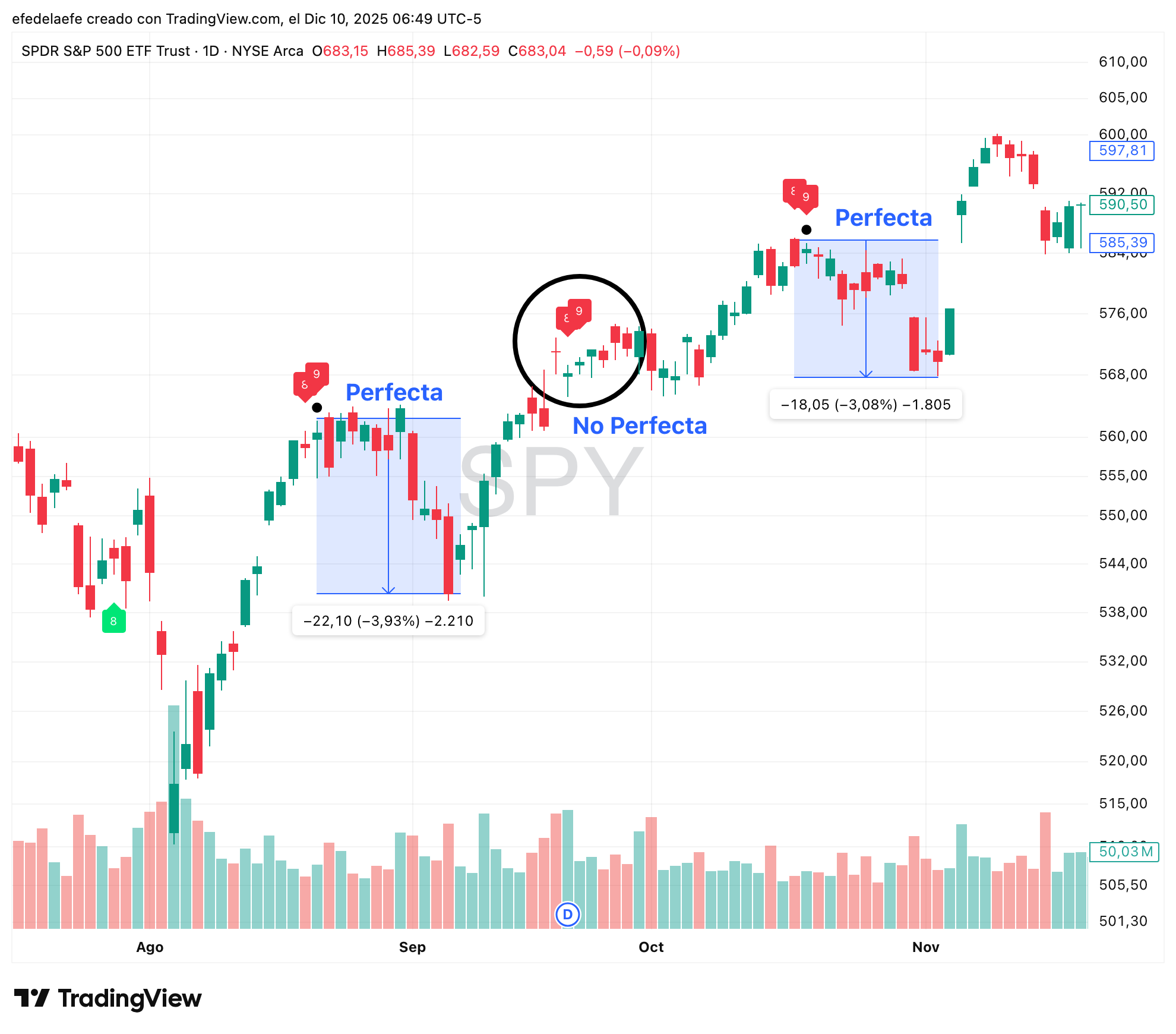 En el indicador que veis en las imágenes, las señales “Perfectas” van marcadas con un punto debajo del 9: