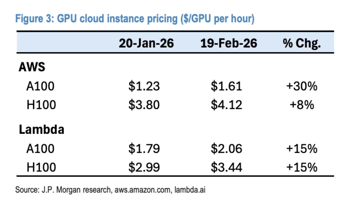En Lambda Labs, tanto el A100 como el H100 subieron un 15%.