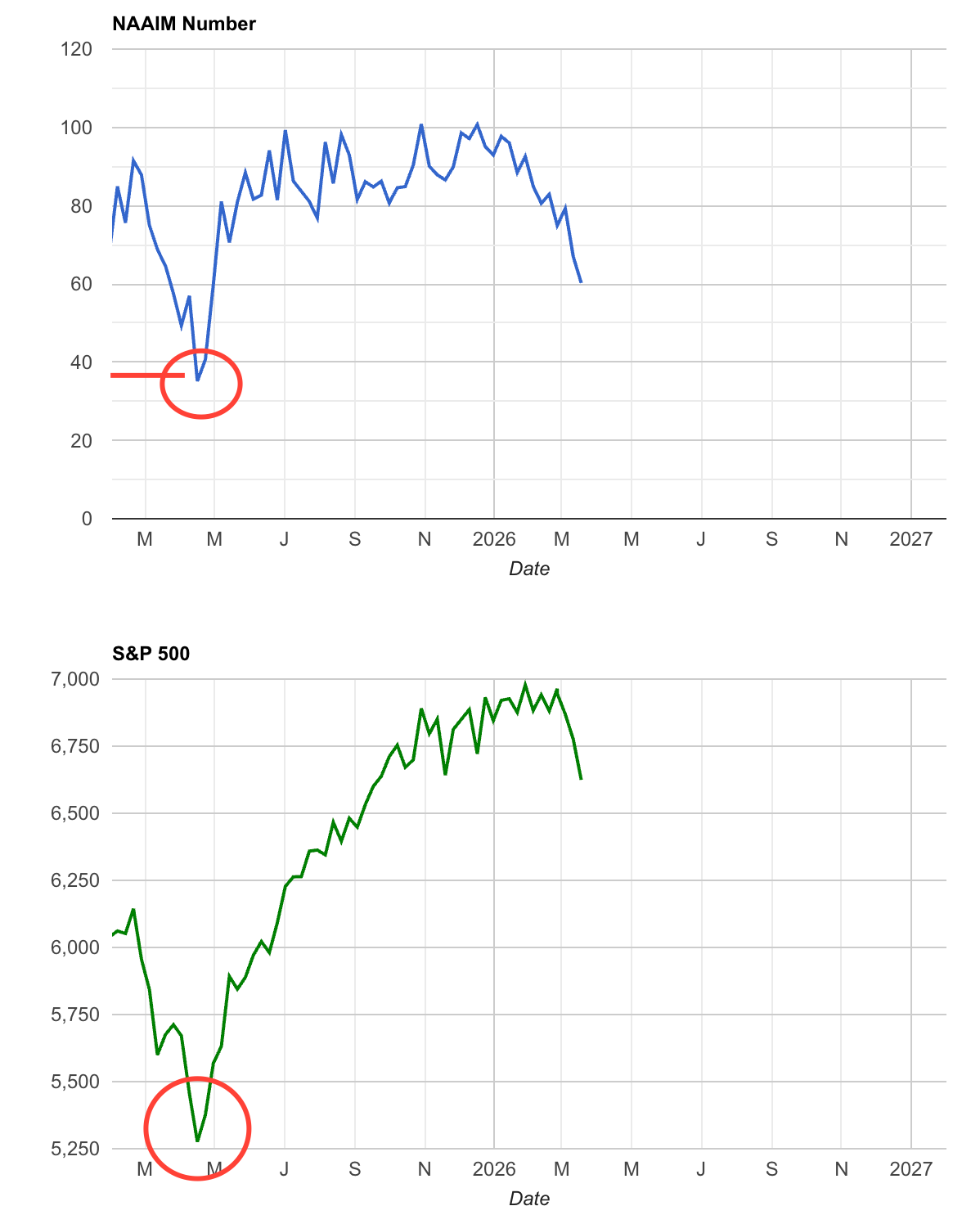NAAIM: 60.24 — Los gestores activos han recortado exposición más de 30 puntos desde enero. Neutro en términos absolutos, pero con una caída reciente significativa.