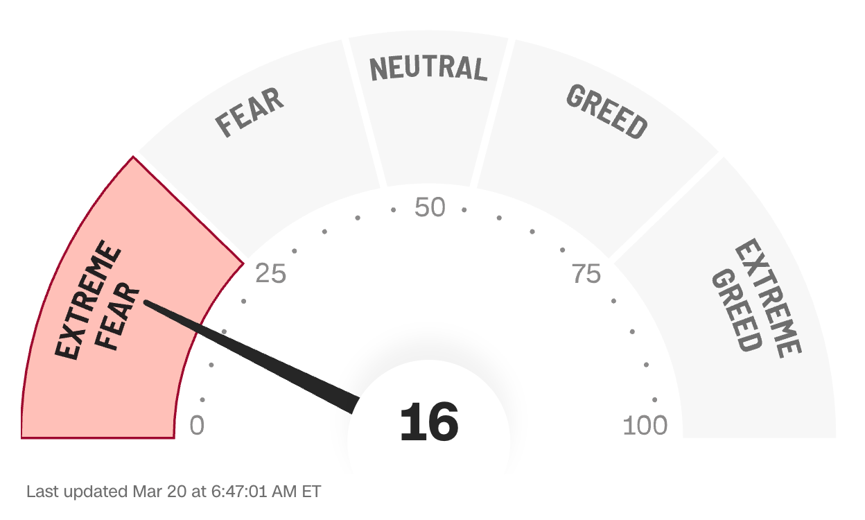 CNN Fear & Greed: 16 — Miedo extremo. Lleva semanas en este rango.