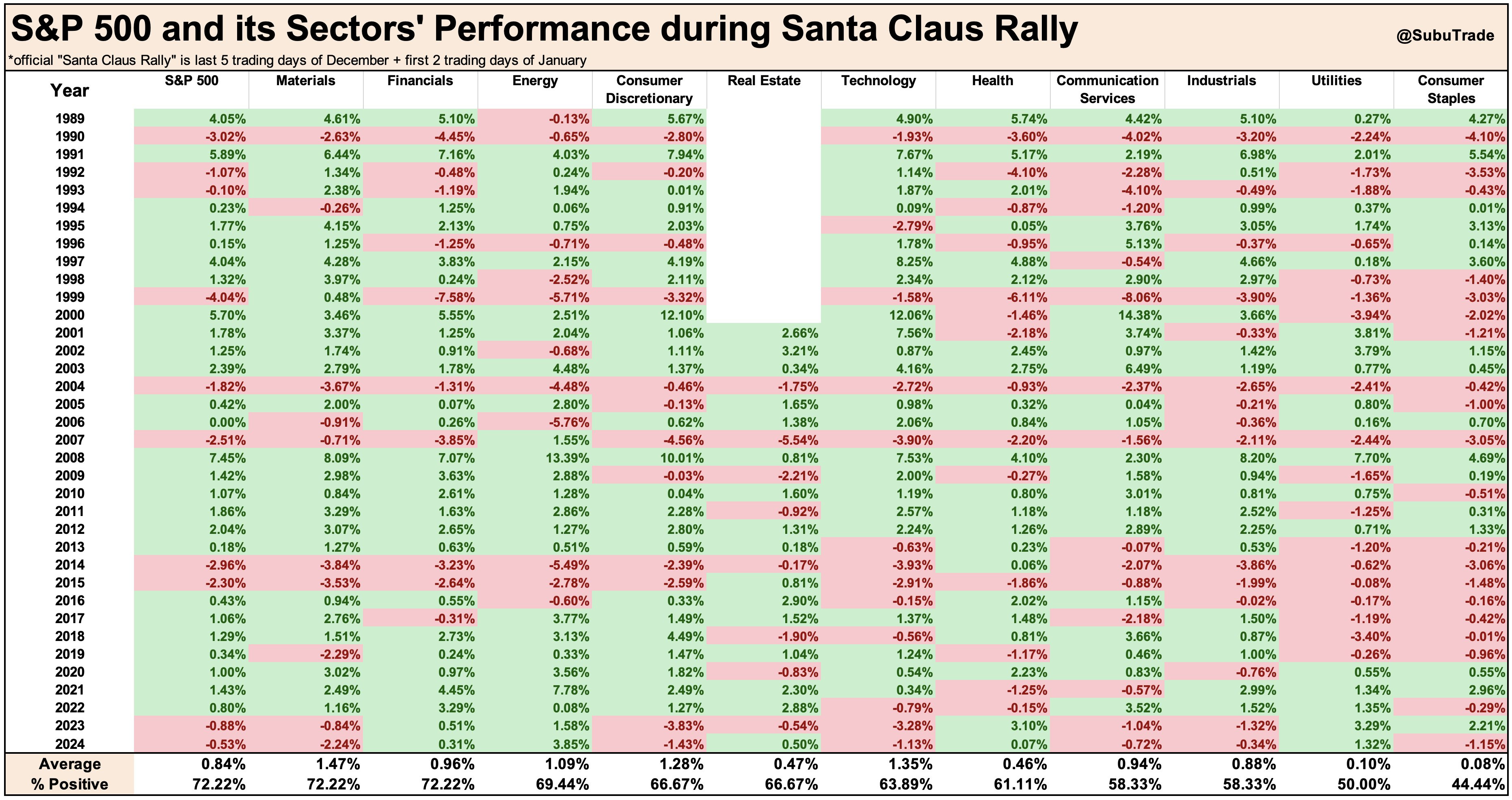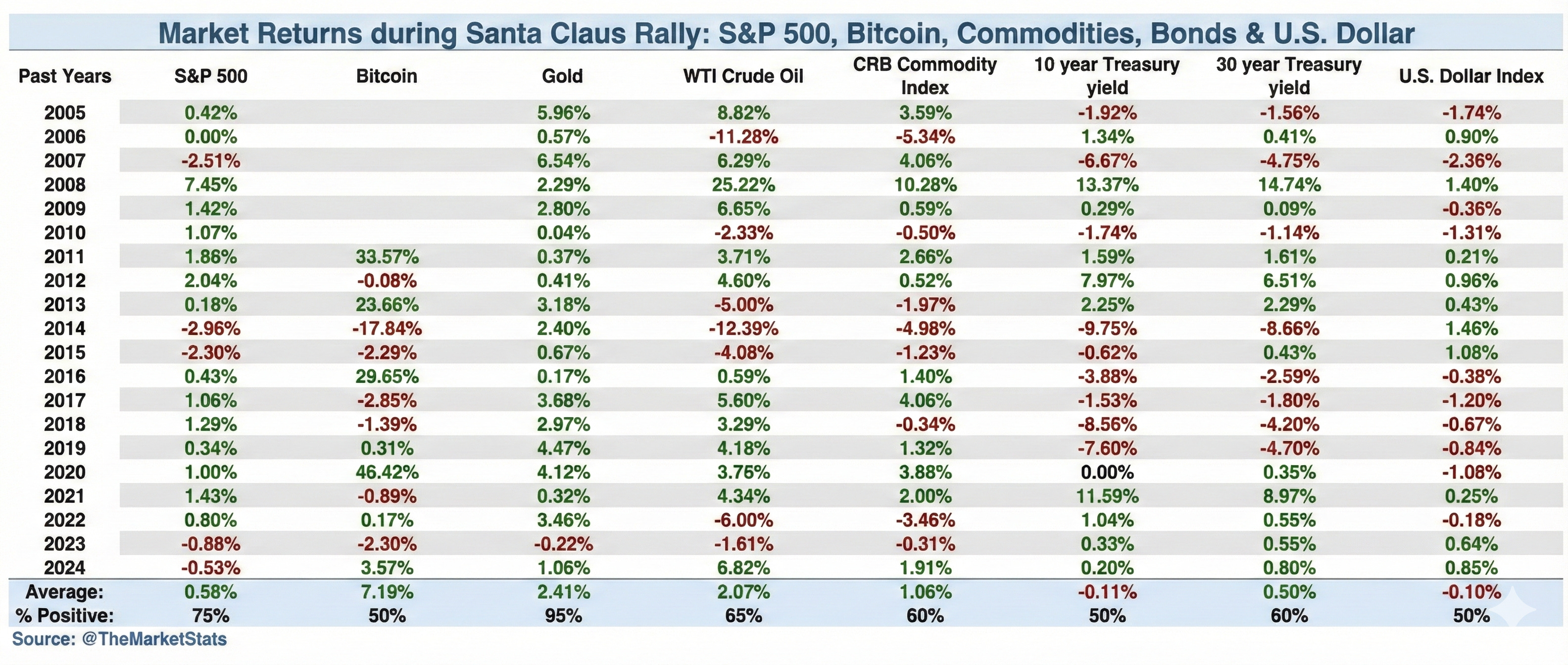 Esto significa que el rally de Santa Claus funciona como un indicador predictivo para el año siguiente: