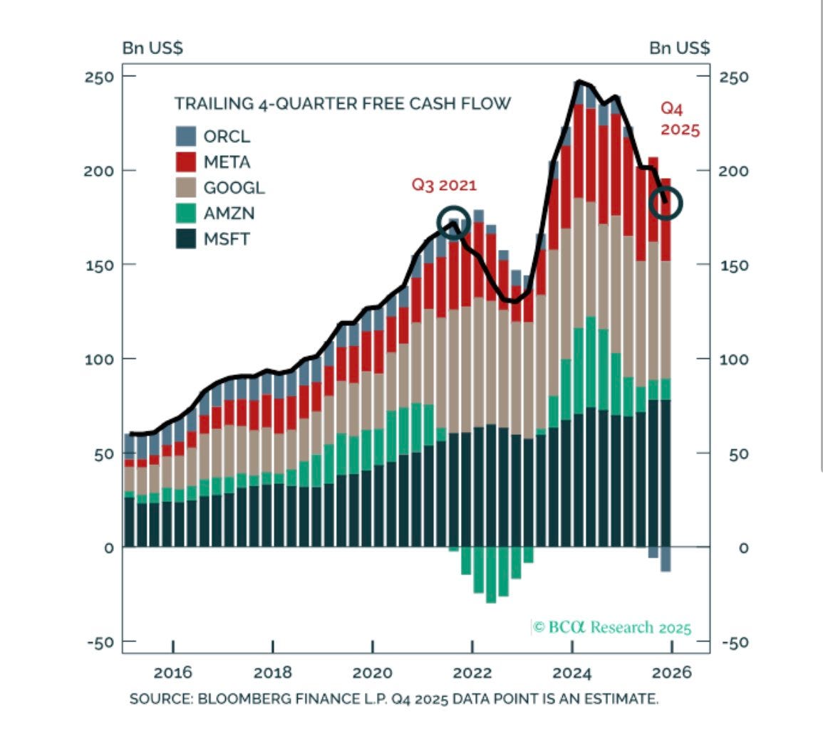 Los demás (especialmente Meta, Amazon y Google) también están gastando mucho en data centers para IA, pero parten de bases más sólidas y generan suficiente cash flow operativo para mantener FCF positivo, aunque en descenso.