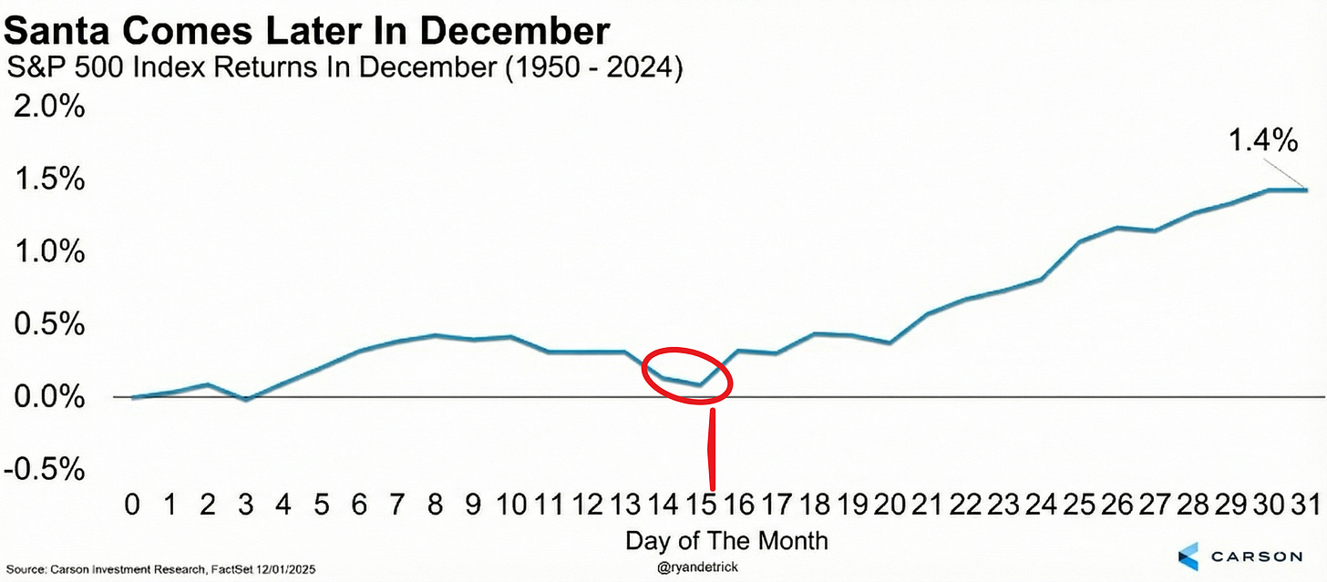 Esa “pausa” de la segunda semana de diciembre no es casualidad ni superstición de traders. Es un patrón viejo, repetido y con razones técnicas muy concretas que se amontonan justo antes de la quincena: