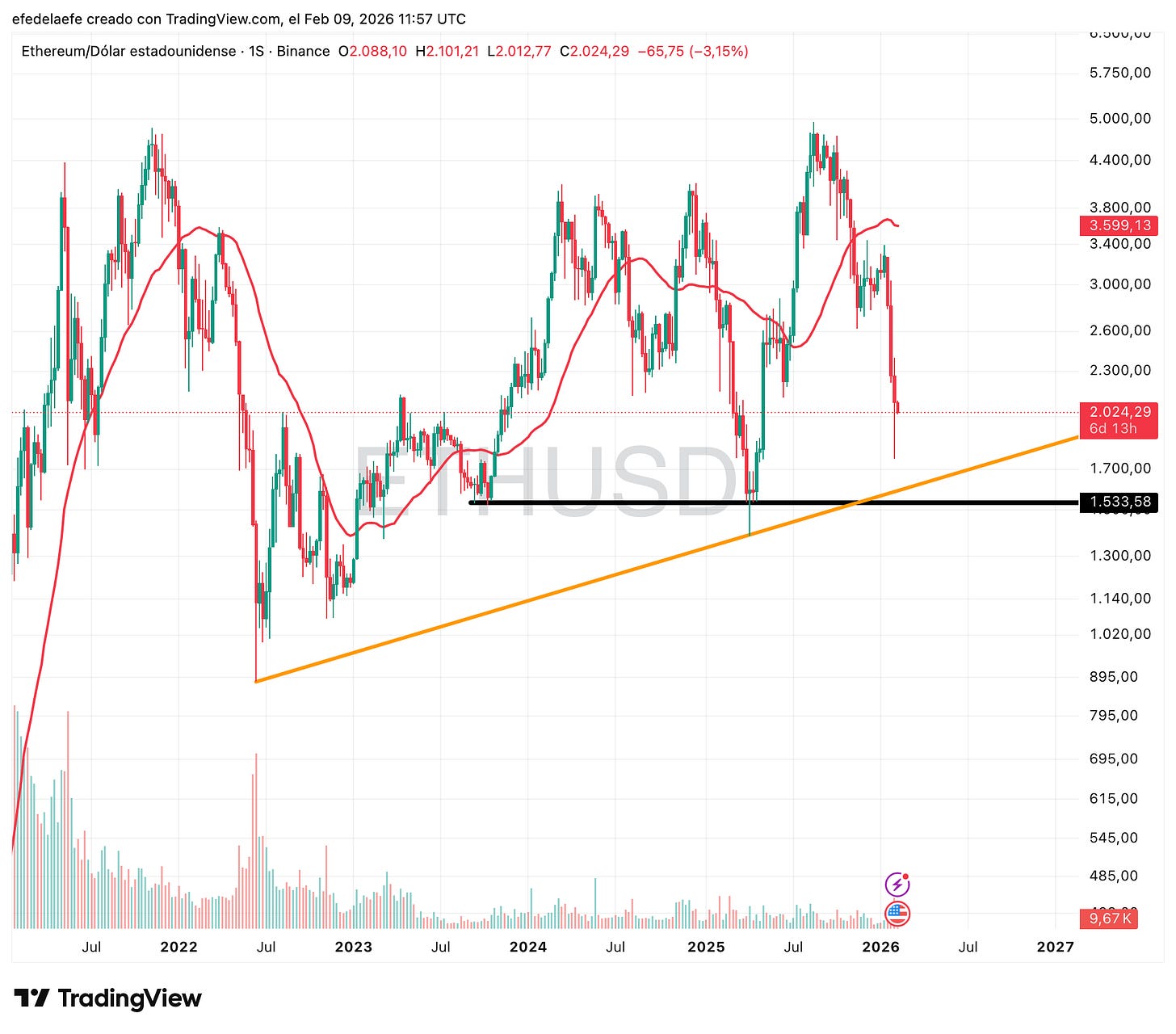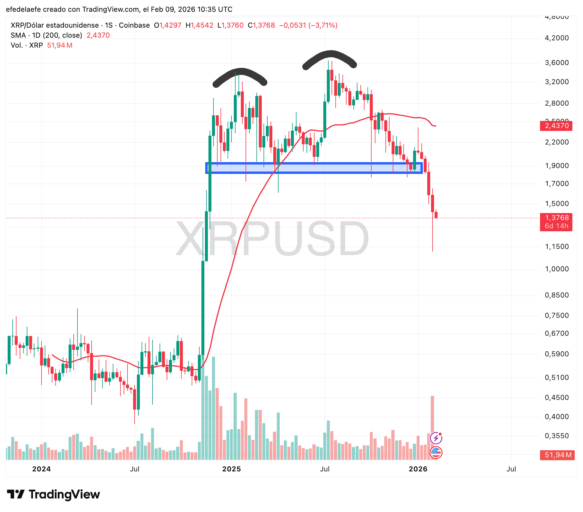 Misma estructura que BTC y SOL, una especie de Hombro-Cabeza-Hombro que nos muestra que no hay demanda, solo oferta.