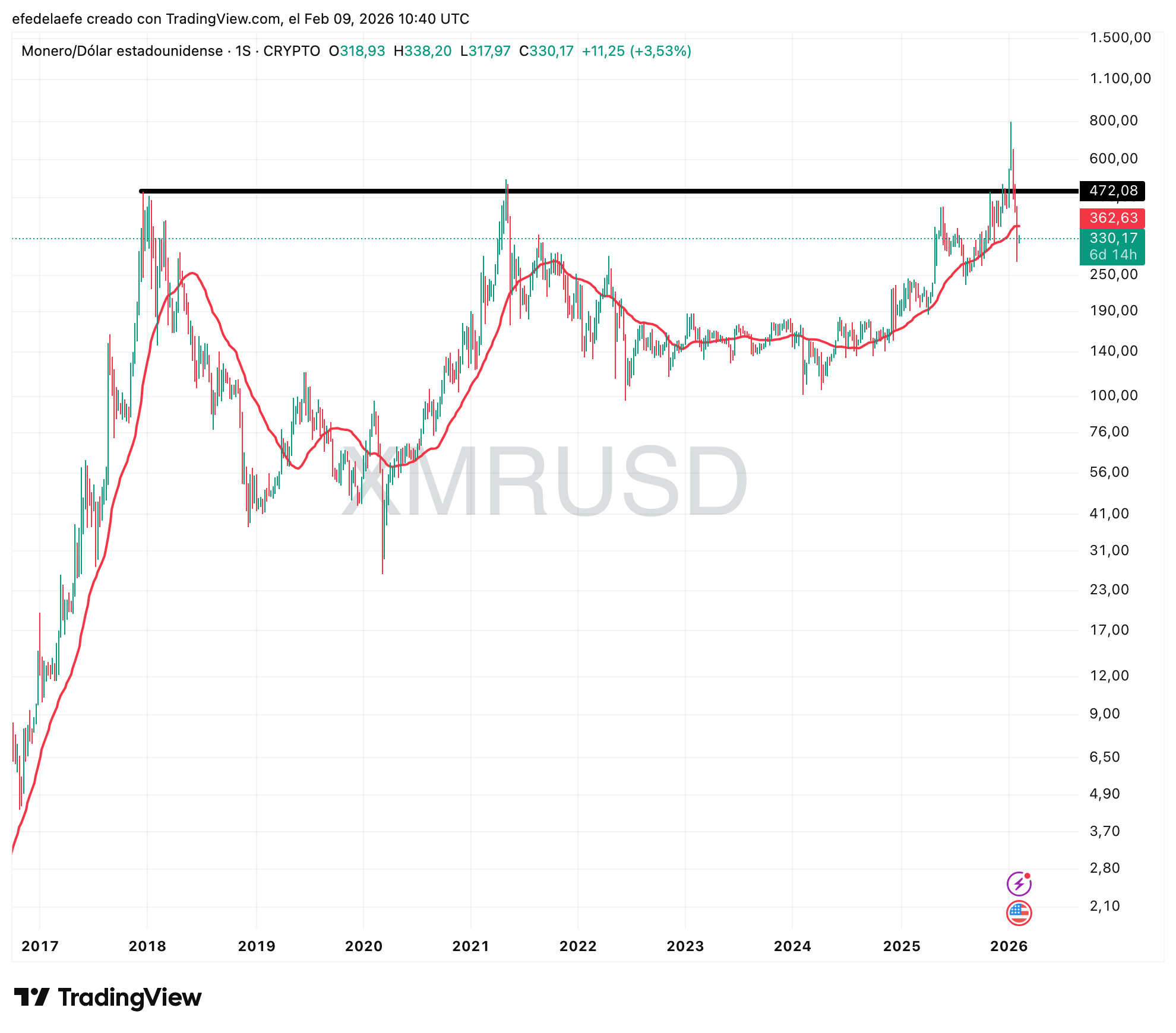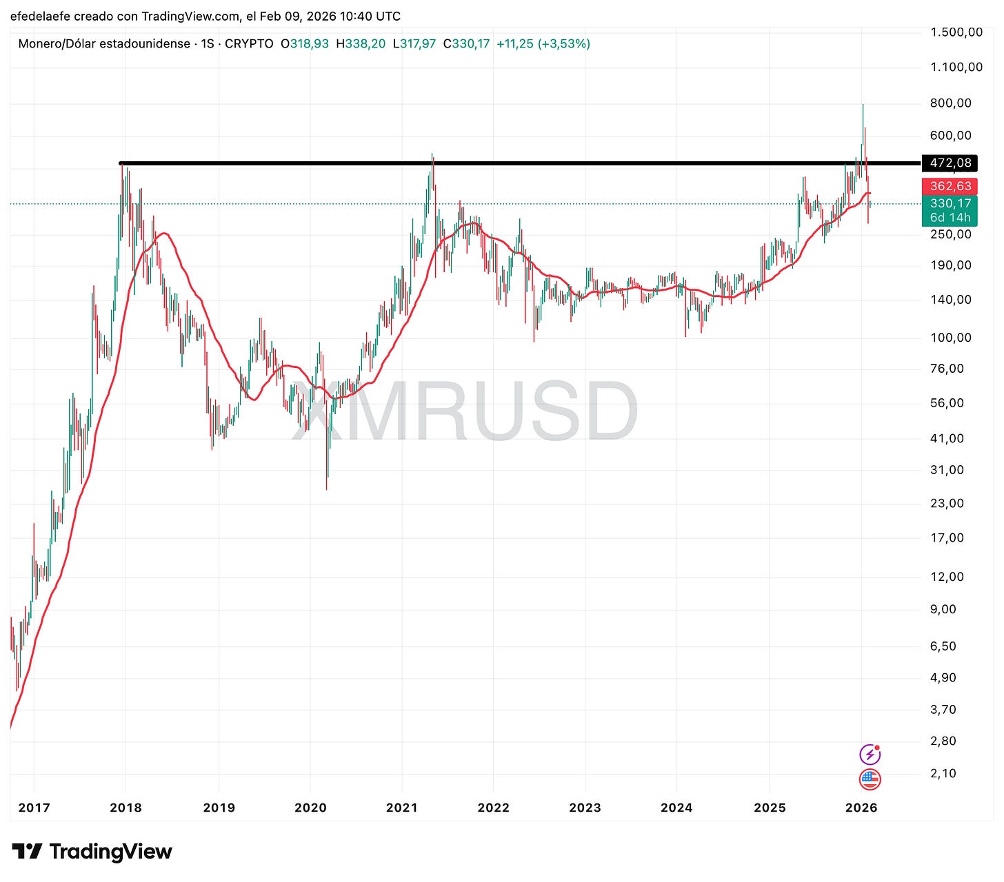 Estoy intentando buscar algo que sea salvable. Monero ha hecho un intento de romper la resistencia en $472 pero ha fallado. Este es el primer gráfico del recap que no da pena. Puede volver a intentarlo. 🟡