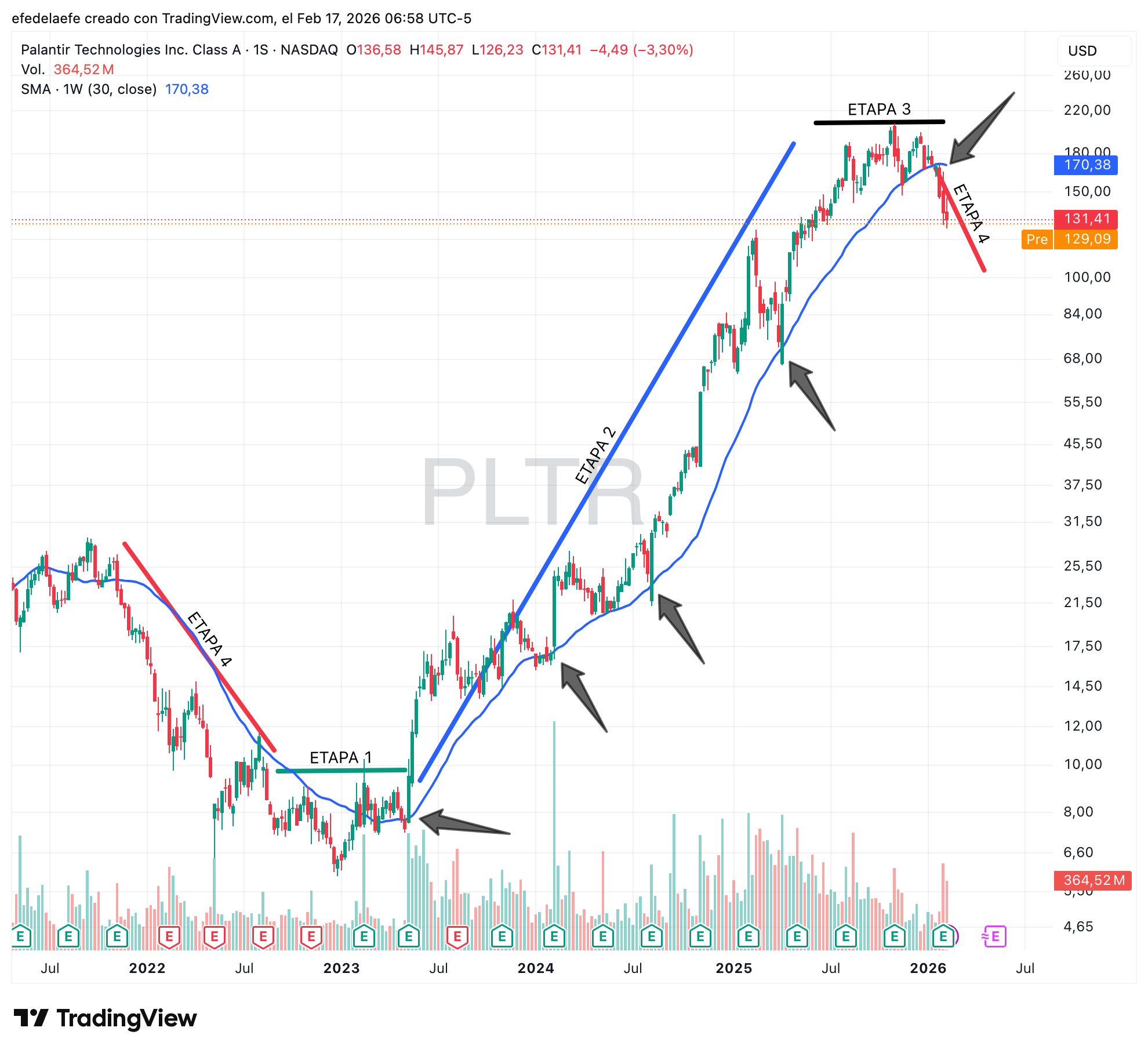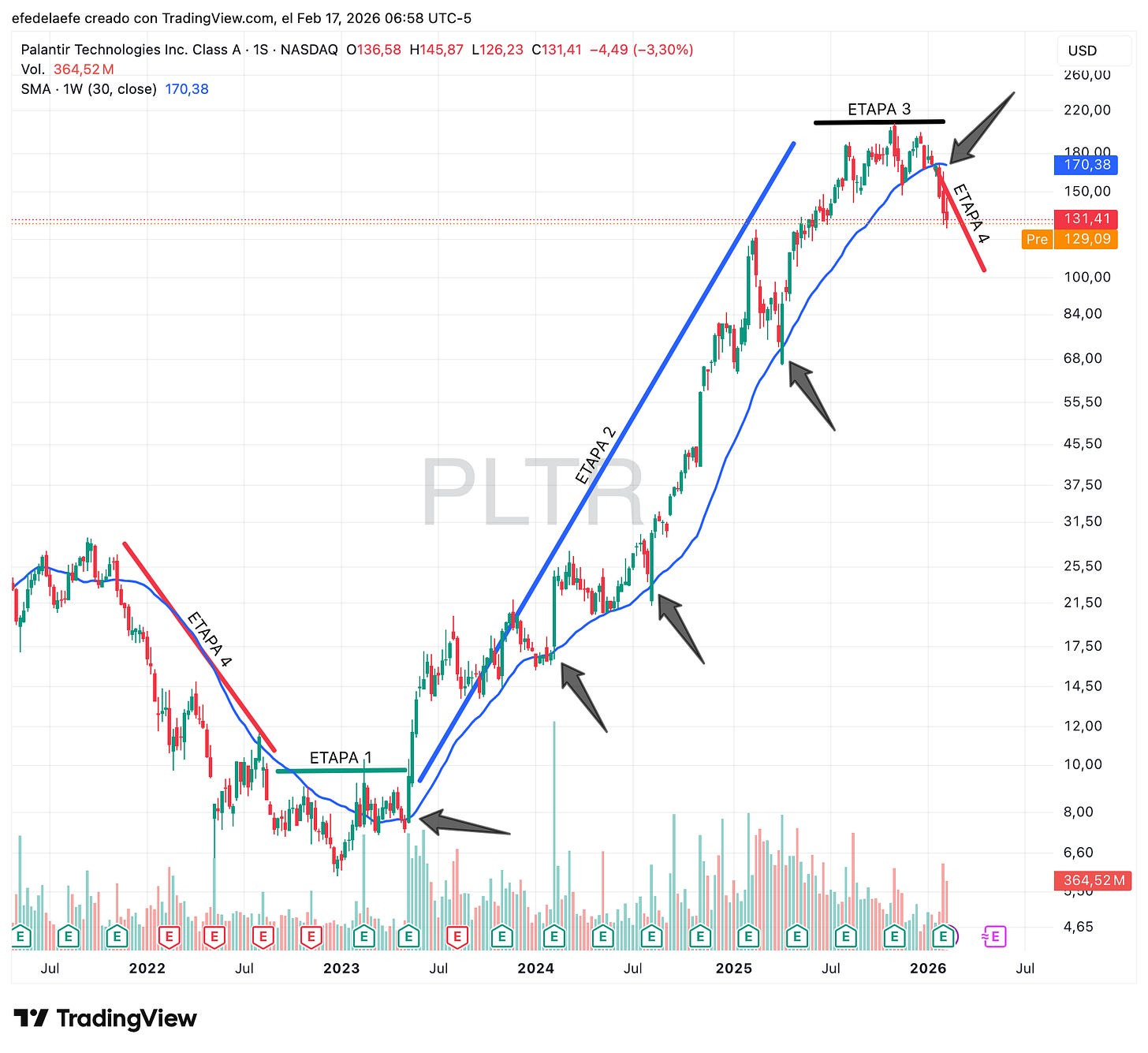 Y por último, PLTR, el gráfico más completo.