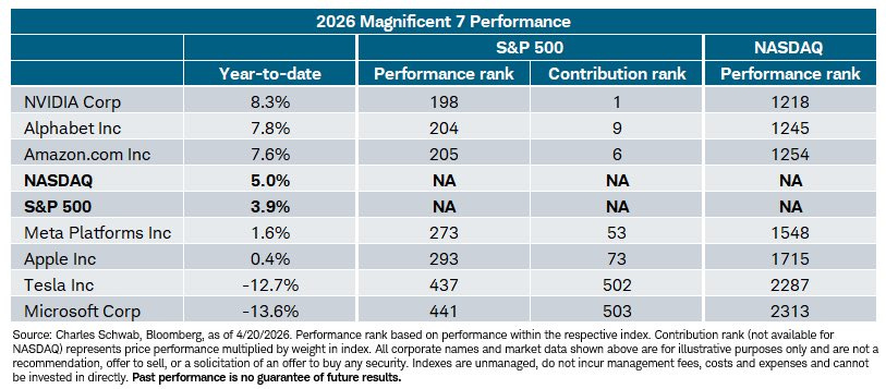 NVIDIA, Alphabet y Amazon acumulan entre +7.6% y +8.3% en lo que va de año y son los tres grandes responsables de que el Ãndice esté donde está: NVIDIA es el mayor contribuidor al S&P 500 en 2026, Amazon el sexto y Alphabet el noveno.